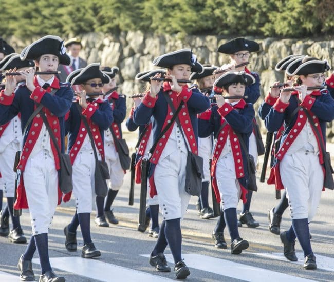 Since 1971, the Lexington Minute Men have recreated the birth of American liberty on Lexington Common, also known as the Lexington Battle Green, at 6 AM on Patriots’ Day. First proclaimed as a public holiday in Massachusetts in 1894, Patriots’ Day commemorates the start of the American Revolution at the Battle of Lexington. The Battle of Lexington is commemorated every year on the third Monday in April. We pay tribute to those patriots who fell on Lexington Green on the morning of April 19, 1775, and to the courage and fortitude of those who continued the fight throughout the day. The celebration usually spans an entire weekend culminating with the annual parade through Lexington Center.